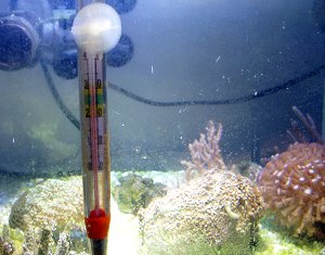 また比重計には、機種によってかなり差が認められます。こちらの飼育器具類のコラムに掲載をしておりますので、ご参考になりましたら幸いです。 (2015/8/16更新・追記) サンゴにとっての適正な比重地の見解に、当方ですこし変化・変更がありました。 -------------------------------------------------------------------------------------------------------------------------------------- ※ヒーター・クーラー・ファンを用いた具体的な水温の維持方法は、初心者向けスタートガイドブック BL-EXTRA-1をご覧下さい。ここでは、各サンゴの適正な水温についての 一般的な好日性サンゴはソフト、ハード双方で25〜28℃がもっとも適温です。許容範囲内は24〜28.5℃程度です。 水質が良い場合、一部の種を除いてLPSでは約29℃まで耐えられます。さらに、ハナガササンゴ、バブル、コエダナガレハナなどは、30℃でも耐え、全開になっている記録 一般論と相違がある理由 密漁・違法の近海産ハードコーラルは、23〜25℃が適している サンゴのを飼育する水温には、色々な意見と情報が交錯しています。 スキューバダイバーさんなどのページをぜひ見てみてください サンゴ礁豊かな赤道付近でダイビングをされ、各地のサンゴ礁の状態や水温を明確に記録されている方のページはたくさんあります。ぜひ一度ご覧下さい。水温は季節 当方の過去の高水温実験 以下の写真は、当方の在庫水槽で水温が29〜31℃の状態になった際の状態です。このような水温が長期に続くことはよくないと思われますが、種類によっては耐えられる