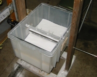 矢継ぎ早に、なんとも気ぜわしいことでお恥ずかしいことですが、先日、新しいリーフパワーソルトN.R.V.の製造器を作成したばかりでありましたが、あの前後からお蔭様で ご注文を多く頂くようになってしまい、新しい製造器でもちょっと苦しい状態になり、在庫を置いている棚が空になってしまって時々棚の中にまるこが入って寝ている (ヘU -x-U zzZZ ヾ(~∇~;)コレコレ)という事態がしばしばで、工作のモチベーションが上がっているうちに半ば架空の予定でした本式の作成を実現してしまいたい欲求に駆 られ、気がつけばホームセンターのナフコ・コメリさんへ向かう車中の人になっていました。 売れるといいましても月に10箱だったものが15箱くらいのペースになった程度なのですが、それでもこちら4畳半工場にとっては大事です。^^; 作成を開始した2/7〜やっと出来たと思った15日に試験製造開始と同時にいきなり故障、改善の余地が数箇所見つかり、16・17日は修理、さらにリーフパワーソルト 自体の成分調整と試験の繰り返しでひたすら泣かされておりました。 お詫び 成分測定値を3回、修正しました。