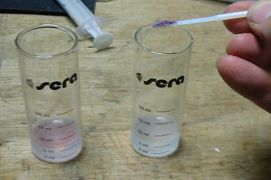 セラ・カルシウムテストのお勧め使用法 セラのカルシウムテストの使用方法につきまして、通常の使用方法では、発色が薄くて見にくいことがあり、改善した使用法を試してみましたので、ご紹介します。 セラ・カルシウムテストは、試薬1を8滴入れて混合、次に粉末試薬2をスプーン1杯入れて混合、試験水がピンク色に変化し、最後に試薬3を滴下して変色を見、試験水が 紫〜青に変化した滴下数から、カルシウム濃度を算定します。 この試薬2の粉末試薬を、説明書では付属の小さなプラスプーンで擦り切れ一杯と書いてありますが、これを、山盛り一杯使用すると、発色が濃くなり、大変見やすくなり ます。今日、同じ水を規定の使用方法と、上記粉末を多めに入れた方法で比較してみましたところ、さしあたり同じ結果が出ました。 ただ双方、試薬3の滴下でさしあたり色が青に変わる滴下数は双方同じ(25滴 Ca500ppm)でしたが、試薬2を多めにいれた方は数十秒すると色がまたピンク色に戻り、 結果あと2滴追加すると色がピンクに戻らなく(青のまま)なりました。それゆえ、色が変わったすぐの段階の滴下数で見ると良いのではと思います。 サンゴ砂の大袋は、随時補充しております。 ここ数年は年に1〜2袋くらいしかうれなかったサンゴ砂の大袋が最近、なぜか月に2〜3袋も買って頂けるようになりました。大変不思議ですが、いずれにしても有難い ことでございます。サンゴ砂は、おき場所の問題で、大袋は1〜2袋しか在庫できておりませんが、普通の製品とちがって仕入れルートを数本持っており、切れ次第数日 で常に補充しておりますので、どうかご容赦願います。 砂自体の使い方や相談も時にいただき、たとえばわずかな数をふるいにかけて粒を分けてほしいなどの特殊なご要求も個人的には対応していますので、よろしかったらや やこしいことでも気軽に相談してください。 10日〜11日にかけての急なアクセスアップの理由がわかりました。