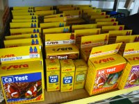 -------------------------------------------------------------------------------------------------------------------------------------- セラpHテスター8.0〜8.5付近の測定について 恐れ入ります。セラ製のpHテスターにつきまして少し補足させていただきます。海水で重要になります8.0〜8.5付近がややわかりにくく、慣れが必要になりますので、 海水ではこの値が重要になる場合が多いため、もしある程度厳密に測定されたい場合、テトラテストペーパー、テトラテストペーハーマリン試薬などの方が好ましいと思います。 このたび、これまでも扱っておりましたテトラテストペーパーに加え、新たに試薬キット(テトラテストペーハーマリン試薬)の取り扱いを数日中に開始します。 実は最初、セラが不正確なのではないのかと疑い、pH電極やテトラテストペーパーで比較試験をしたところ、まったく問題なく、ありませんでした。ただ、例えばセラ で8.0と8.5はそれぞれを発色させて比較してみると確かに違いがわかるのですが、どちらか片方だけで比色紙で比色しますと分かりにくい、という状態です。 私の疑いグセもこまったもんです。^^;薄幸が災いしているのかもしれません。ヽ(o_ _)o
