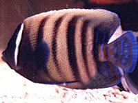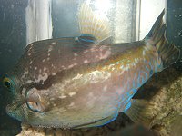 B | C | 一旦餌付くと丈夫ですが、自然界で海綿や海草など 変わった食性の固体がしばしばあるらしく、その 場合はなかなか餌付かない場合もあるようです。 輸入のほか、本州でも三重県〜九州などの漁港で揚げられる ことがあります。 温帯に適応した種で、逆にサンゴ礁ではあまり見られないようです。 |